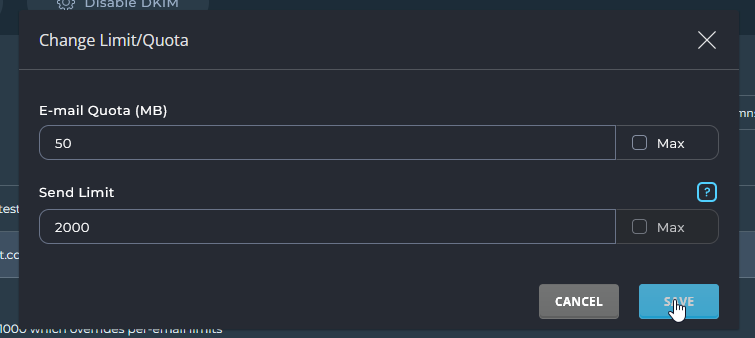 How to change Email account disk limit OR quota in DirectAdmin