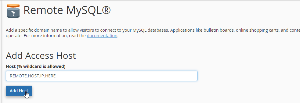 - Click “Add Host”: After adding the IP address, click Add Host. The IP will now be allowed to access MySQL remotely