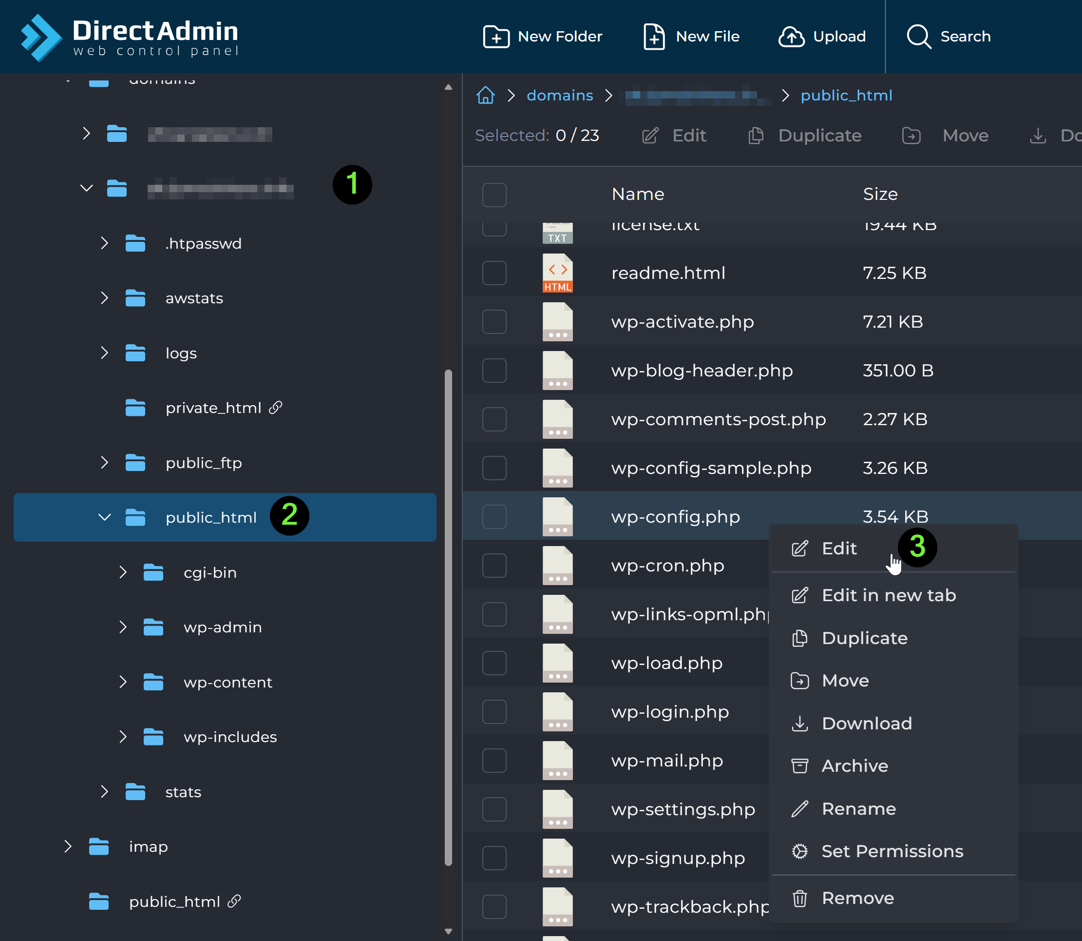 - Go to the File Manager from DirectAdmin.