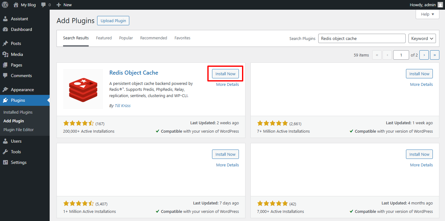 Install Redis Object Cache Plugin in WordPress